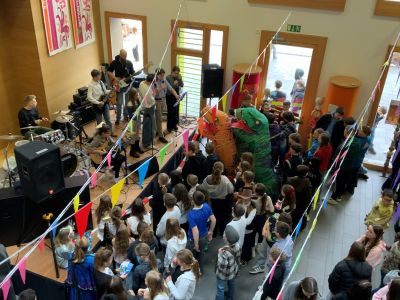 DJ Lukas und Simon aus der 6d sorgten mit toller Musik für beste Stimmung. Besondere Highlights waren der mitreißende Auftritt der Hip-Hop-Grupp und der Schulband, die großen Applaus erntete.