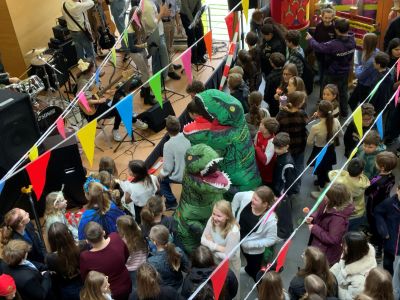 Auch für das leibliche Wohl war gesorgt: Krapfenverkauf und Pommes vom Schülercafé kamen bestens an. Die stimmungsvolle Dekoration von Frau Trauner rundete das gelungene Fest ab.