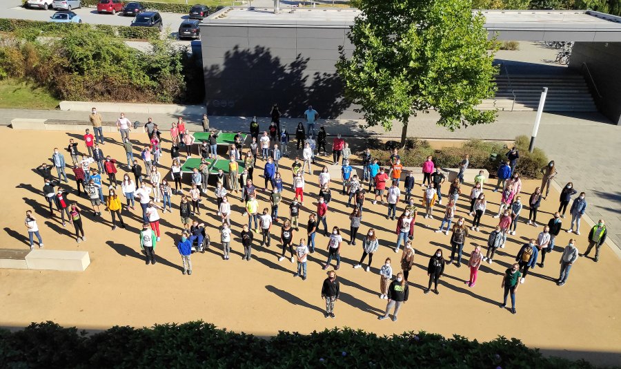 Aufgrund von Corona standen die neuen Realschülerinnen und Realschüler, die meisten gemeinsam mit mindestens einem Elternteil, wesentlich weniger dicht gedrängt als sonst, aber nicht minder erwartungsvoll auf dem Pausenhof.