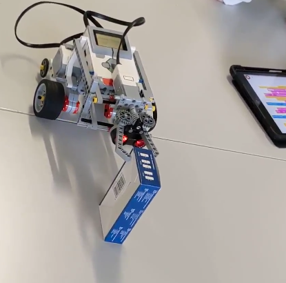 - Den Robotern brachten die Schülerinnen und Schüler mithilfe eigener Programmabläufe bei, selbstständig auf einen Gegenstand zuzufahren und davor anzuhalten. Dann wurde der Gegenstand gegriffen und abtransportiert:
