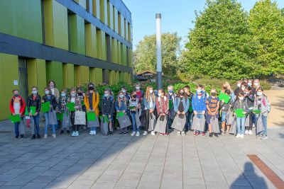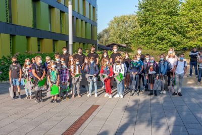 Dank des wunderbaren Spätsommerwetters konnte die Realschule Schöllnach, genauer die Schulleitung, RSD Michael Graf, RSK Christian Marchl und ZwRSK Andreas Oswald, die angehenden Fünftklässler coronakonform auf dem Pausenhof herzlich begrüßen. Auch die Klasse 6b begrüßte zusammen mit Ingeborg Berglehner die Neulinge mit einem eigens gedichteten Lied. Danach machten sich die Klassen auf in ihr jeweiliges Klassenzimmer, begleitet von den Klassleitern Johanna Faigl (5a), Liane Eberle (5b), Christina Spandel (5c), Michaela Bredl (5d) und Marina Weber (5e). Um ihnen den Neuanfang zu erleichtern, erhielten alle als Geschenk eine Mappe, in der künftig alle wichtigen Unterlagen wie Elternbriefe oder Schulaufgaben sicher aufbewahrt werden können, einen Stift und eine Tasche mit dem Logo der Realschule Schöllnach in der sie Wichtiges (und auch weniger Wichtiges) zukünftig transportieren können. Der erste Vormittag verging wie im Flug mit dem gegenseitigen Kennenlernen und dem Zurechtfinden an der neuen Schule, während sich die Eltern im „Elterncafé“ des Elternbeirats unterhalten und austauschen konnten. Zusätzlich gab es für die Eltern auch noch einen Vortrag zum Thema „Lernen lernen“ sowie eine Einführung in Teams und in den Schulmanager. Am Ende dieses aufregenden Vormittags begleiteten die Tutoren – engagierte Schülerinnen und Schüler der 9. Klassen – die ihnen zugeteilten Fünftklässler zu den Bussen. Die Realschule Schöllnach begrüßte allerdings nicht nur neue Schülerinnen und Schüler, sondern auch neue Lehrkräfte. So verstärken zukünftig Berger Nina (Englisch/Deutsch), Hackmann Florian (Deutsch/Geschichte), Sperl Christine (Deutsch/Geschichte), Stündler Josef (Mathematik/Physik/IT), Wörl Stefanie (Mathematik/Sport), Wötzel Georg (Mathematik/Musik) und Zitzelsberger Markus (Musik) das Lehrerkollegium der Realschule Schöllnach.