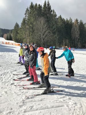 Nachdem die Gruppen eingeteilt waren, ging es schon ab auf die Piste. Die rennerfahrenen „Profis“ machten das Skigebiet in kurzer Zeit unsicher. Die Anfänger versuchten sich mit ersten Gleiterfahrungen auf Skiern im Schnee. Unterstützt durch ihre Lehrkräfte konnten die Rennprofis ihr eigenes fahrerisches Können verbessern. Auch diejenigen, die zum ersten Mal auf Skiern standen, schafften es am zweiten Tag mit dem Schlepplift hoch zu fahren und die Skipiste mit sicheren Kurven hinunter zu „wedeln“. Das ist eine großartige Leistung!!!