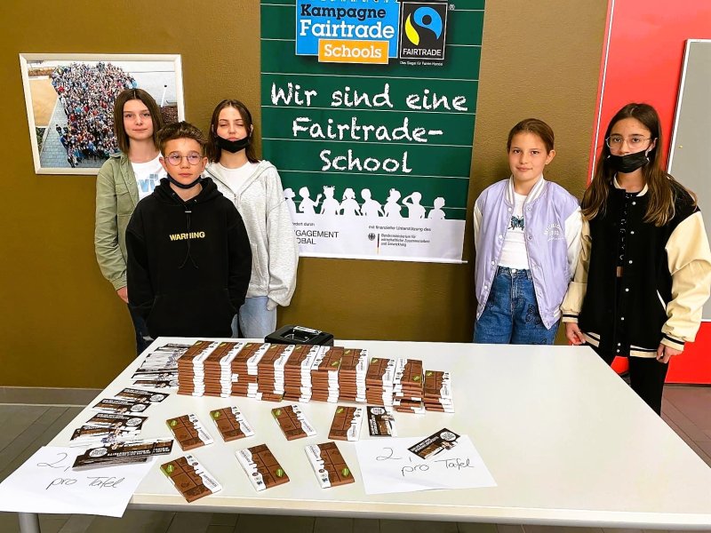 Gutes tun - Bäume pflanzen (lassen) - spenden und Schokolade genießen! In regelmäßigen Abständen verkaufen die Schülerinnen und Schüler aus dem Fairtrade Team „Die Gute Schokolade“ in den Pausen. Eine kleine Stärkung kann Großes Bewirken.