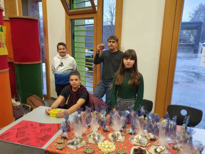 Frisch zubereitete Crêpes, Kinderpunsch, Hot Dogs, heiße Schokolade und Zuckerwatte - dieses Weihnachtsmarktaroma erwartete die Schülerinnen und Schüler und deren Familien an der Realschule Schöllnach. Wie bereits seit vielen Jahren Tradition, findet am letzten Schultag vor Weihnachten kein Unterricht statt, sondern jede Klasse überlegt sich, was sie zum Weihnachtsmarkt beitragen könnte. Auch in diesem Jahr war nicht nur bestens für das leibliche Wohl gesorgt. Die Hip-Hop-Gruppe (geleitet von den Schülerinnen Lena Urmann und Corinna Kramheller) zeigte, was sie extra für den Weihnachtsmarkt einstudiert hatte und für den passenden musikalischen Rahmen sorgte die Schülerband (unter der Leitung von Lehrer Martin Candussio), einige Bläser aus der Klasse 6e sowie eine Trommelvorführung der Klasse 6a (geleitet von Lehrerin Johanna Faigl). Außerdem wurde natürlich bereits seit Wochen im Unterricht und auch daheim – oft mit Hilfe der Papas und Mamas— gebastelt wie in der Weihnachtswerkstatt. Wunderschöne weihnachtliche Dekoartikel und kleine Geschenke fanden reichlich Abnehmer. Vor den Verkaufsständen bildeten sich oft kleine Schlangen, so groß war der Besucherandrang. Für die Eltern war es eine wundervolle Möglichkeit, sich in einem ungezwungenen Rahmen mit anderen Eltern und auch Lehrern auszutauschen und gleichzeitig die Gelegenheit, letzte Weihnachtsgeschenke zu ergattern – und das auch noch für einen guten Zweck. Die Realschule Schöllnach engagiert sich seit Jahren für das Ronald McDonald Haus in Passau und für den Tierschutzverein Deggendorf. Neu in diesem Jahr war die Spende an den Bunten Kreis e.V. Deggendorf, die die Familien von zu früh geborenen und kranken Kindern unterstützen. Die Schülerinnen und Schüler jeder Klasse konnten selbst entscheiden, an welche Organisation ihr Erlös gespendet werden sollte. Am Ende dürfen sich die drei Organisationen nun insgesamt über die stolze Summe von 4642 Euro freuen.