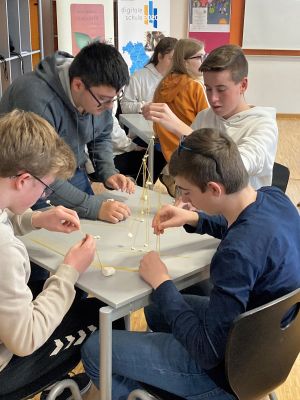 Die Klasse 9b kam in diesem Schuljahr in den Genuss des Projekttags „Gründerwoche Deutschland 2022“, da drei Gruppen aus dieser Klasse an dem Existenzgründerwettbewerb „Ideen machen Schule“ der „Hans Lindner Stiftung“ teilnehmen.