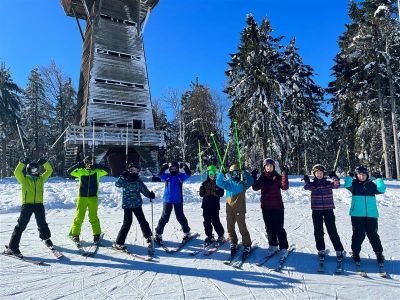 Nachdem der Wettergott doch noch ein Einsehen hatte und es endlich schneien ließ, machten sich die Sechstklässler der Realschule Schöllnach auf den Weg zum Geißkopf um dort drei Skitage zu verbringen. Bei traumhaften Schneebedingungen und Sonnenschein pur startete der Kurs für die jungen Skifahrer und Skifahrerinnen, die an diesen Tagen entweder ihr fahrerisches Können verfeinerten oder aber zum ersten Mal die Skier anschnallten. Auch wenn aller Anfang schwer ist, carvten und wedelten die Schöllnacher bereits am zweiten Tag die Pisten hinunter, als hätten sie nie etwas anderes getan. Am Ende waren sich alle einig, dass Skifahren wirklich so „leiwand“ ist, wie es das bekannte Lied bereits bei der Anreise im Bus versprochen hat.