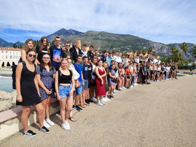 An den beiden folgenden Tagen wurde die Gruppe von Franka, einer Reiseleiterin begleitet. Mit ihrer wunderbaren Art verzauberte sie die Jugendlichen und auch die Lehrkräfte. Am Dienstag war zunächst ein Aufenthalt in Nizza geplant. Der Flair der provinzialen Altstadt, welcher der berühmte Blumenmarkt innewohnt, und das rege Treiben in Nizzas kleinen Gässchen beeindruckte sehr. Am Nachmittag führte der Weg weiter nach Cannes. Nach kurzer Führung durch die sehenswerte Altstadt konnte wieder in Kleingruppen selbstständig die Stadt, die für ihre Filmfestspiele bekannt ist, erkundet werden. Faszinierend waren die Handabdrücke sämtlicher Regisseure und Schauspieler am Filmfestgebäude – ähnlich des „Walk of Fame“ in Hollywood.