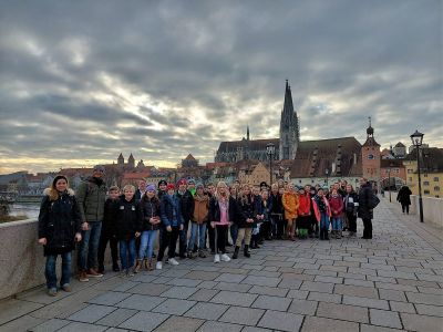 Michaels Ende Zaubermärchen ist ein Klassiker der Kinderliteratur. Hochaktuell und mit viel Fantasie erzählt das Theaterstück von diabolischer Umweltzerstörung und dem Kampf zwischen Gut und Böse. Am Silvesternachmittag drängt die Zeit, denn der berühmte Magier Beelzebub Irrwitzer und seine Tante die Geldhexe Tyrannja Vamperl haben ihr Soll an schlechten Taten für dieses Jahr noch nicht erreicht. Die Lösung für ihr Problem: der satanarchäolügenialkohöllische Wunschpunsch. Verhindern sollen diesen teuflischen Plan der Kater Maurizio di Mauro und die Krähe Jakoba Krakel – beide Geheimagenten im Auftrag des „Hohen Rats der Tiere“. Wird es den beiden Tieren gelingen, die bösen Zauberer aufzuhalten? Die Klassen 5b und 5d der Realschule Schöllnach haben sich am 7.12.2022 nach Regensburg aufgemacht, um mit ihren Lehrerinnen und Lehrer Florian Hackmann, Krisztina Naumann und Tanja Schuler genau das herauszufinden. Nach einem kurzen Gang durch die Regensburger Innenstadt kamen die Schülerinnen und Schüler voller Neugierde am Theater im Antoniushaus an und ließen sich von den Schauspielern, dem beeindruckenden Bühnenbild und natürlich der spannenden Geschichte verzaubern. Für manche war es der erste Theaterbesuch überhaupt – aber hoffentlich nicht der letzte. Dieser Tag war eine passende Einstimmung auf das bevorstehende Weihnachtsfest und eine schöne Abwechslung vom Schulalltag.