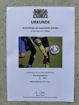 Im Bezirksfinale in Dingolfing kämpften die Schöllnacher gegen die Mannschaften der RS Schweikelberg (2:1), der RS Dingolfing (1:2) und dem Gymnasium Seligenthal (1:1) um den Einzug ins Südbayern-Finale.