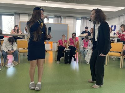 Drei Tage waren die Theatergruppe, das Technikteam und die Musiker in Passau im Haus der Jugend, um das diesjährige Theaterstück, das am Donnerstag, 22.05.2025 zur Aufführung kommt (save the date!), einzustudieren. Alternde Diven, Santa Claus, Best-Friend-Girlies, Flüchtige, ein Detektiv, und, und, und…. Sie alle wollen in den nächsten Flieger nach Madrid steigen. Leider ergeht es ihnen nicht anders wie den Passagieren heute am Münchner Flughafen - sie sitzen am Flughafen fest. Unter der Leitung von Ramona Schwarzhuber (Regie) und Georg Wötzel (Technik) wurde fleißig geprobt.