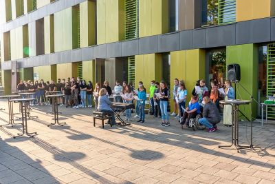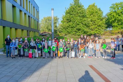 Dank des wunderbaren Spätsommerwetters konnte die Realschule Schöllnach, genauer die Schulleitung, RSD Michael Graf, RSK Christian Marchl und ZwRSK Andreas Oswald, die angehenden Fünftklässler coronakonform auf dem Pausenhof herzlich begrüßen. Auch die Klasse 6b begrüßte zusammen mit Ingeborg Berglehner die Neulinge mit einem eigens gedichteten Lied. Danach machten sich die Klassen auf in ihr jeweiliges Klassenzimmer, begleitet von den Klassleitern Johanna Faigl (5a), Liane Eberle (5b), Christina Spandel (5c), Michaela Bredl (5d) und Marina Weber (5e). Um ihnen den Neuanfang zu erleichtern, erhielten alle als Geschenk eine Mappe, in der künftig alle wichtigen Unterlagen wie Elternbriefe oder Schulaufgaben sicher aufbewahrt werden können, einen Stift und eine Tasche mit dem Logo der Realschule Schöllnach in der sie Wichtiges (und auch weniger Wichtiges) zukünftig transportieren können. Der erste Vormittag verging wie im Flug mit dem gegenseitigen Kennenlernen und dem Zurechtfinden an der neuen Schule, während sich die Eltern im „Elterncafé“ des Elternbeirats unterhalten und austauschen konnten. Zusätzlich gab es für die Eltern auch noch einen Vortrag zum Thema „Lernen lernen“ sowie eine Einführung in Teams und in den Schulmanager. Am Ende dieses aufregenden Vormittags begleiteten die Tutoren – engagierte Schülerinnen und Schüler der 9. Klassen – die ihnen zugeteilten Fünftklässler zu den Bussen. Die Realschule Schöllnach begrüßte allerdings nicht nur neue Schülerinnen und Schüler, sondern auch neue Lehrkräfte. So verstärken zukünftig Berger Nina (Englisch/Deutsch), Hackmann Florian (Deutsch/Geschichte), Sperl Christine (Deutsch/Geschichte), Stündler Josef (Mathematik/Physik/IT), Wörl Stefanie (Mathematik/Sport), Wötzel Georg (Mathematik/Musik) und Zitzelsberger Markus (Musik) das Lehrerkollegium der Realschule Schöllnach.