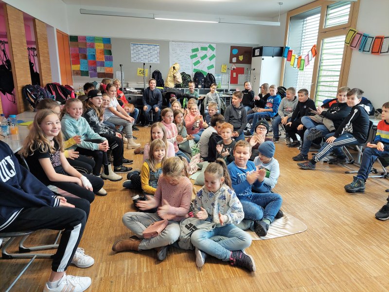 Nach zwangsbedingter jahrelanger Corona-Pause war es endlich wieder Zeit für ein gemeinsames Projekt mit den Grundschulen aus dem Umkreis: So kamen auf Einladung der Klasse 5b mit ihrer Lehrkraft Tanja Schuler über das Schuljahr hinweg verschiedene Grundschulen zu Besuch, um die unterhaltsame Geschi...