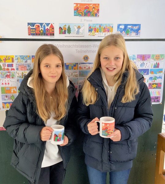 Groß war die Freude der beiden Schülerinnen Franziska Gruber und Katharina Pauli aus der Klasse 6a über ihren Erfolg beim „Weihnachtstassenwettbewerb“, der nach einer coronabedingten Pause dieses Jahr endlich wieder stattfinden konnte.