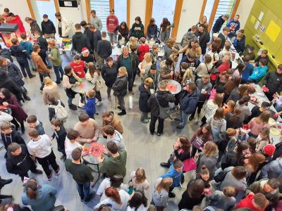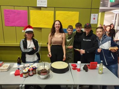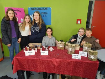Frisch zubereitete Crêpes, Kinderpunsch, Hot Dogs, heiße Schokolade und Zuckerwatte - dieses Weihnachtsmarktaroma erwartete die Schülerinnen und Schüler und deren Familien an der Realschule Schöllnach. Wie bereits seit vielen Jahren Tradition, findet am letzten Schultag vor Weihnachten kein Unterricht statt, sondern jede Klasse überlegt sich, was sie zum Weihnachtsmarkt beitragen könnte. Auch in diesem Jahr war nicht nur bestens für das leibliche Wohl gesorgt. Die Hip-Hop-Gruppe (geleitet von den Schülerinnen Lena Urmann und Corinna Kramheller) zeigte, was sie extra für den Weihnachtsmarkt einstudiert hatte und für den passenden musikalischen Rahmen sorgte die Schülerband (unter der Leitung von Lehrer Martin Candussio), einige Bläser aus der Klasse 6e sowie eine Trommelvorführung der Klasse 6a (geleitet von Lehrerin Johanna Faigl). Außerdem wurde natürlich bereits seit Wochen im Unterricht und auch daheim – oft mit Hilfe der Papas und Mamas— gebastelt wie in der Weihnachtswerkstatt. Wunderschöne weihnachtliche Dekoartikel und kleine Geschenke fanden reichlich Abnehmer. Vor den Verkaufsständen bildeten sich oft kleine Schlangen, so groß war der Besucherandrang. Für die Eltern war es eine wundervolle Möglichkeit, sich in einem ungezwungenen Rahmen mit anderen Eltern und auch Lehrern auszutauschen und gleichzeitig die Gelegenheit, letzte Weihnachtsgeschenke zu ergattern – und das auch noch für einen guten Zweck. Die Realschule Schöllnach engagiert sich seit Jahren für das Ronald McDonald Haus in Passau und für den Tierschutzverein Deggendorf. Neu in diesem Jahr war die Spende an den Bunten Kreis e.V. Deggendorf, die die Familien von zu früh geborenen und kranken Kindern unterstützen. Die Schülerinnen und Schüler jeder Klasse konnten selbst entscheiden, an welche Organisation ihr Erlös gespendet werden sollte. Am Ende dürfen sich die drei Organisationen nun insgesamt über die stolze Summe von 4642 Euro freuen.