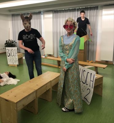 Drei Tage lang konnte sich die Theatergruppe der Realschule Schöllnach unter der Leitung von Ramona Schwarzhuber und das Technikteam, angeleitet von Georg Wötzel, auf ihren großen Auftritt Anfang Mai vorbereiten. Schließlich wird Shakespeares Sommernachtstraum zum Besten gegeben – zwar in einer abgespeckten und komödiantisch aufbereiteten Version des Autorenduos Jochen Cavallo und Patrick Schefczik, die Grundgeschichte über die Liebeswirrungen zwischen Hermia, Demetrius, Lysandra und Helena, in erster Linie verursacht von Puck, dem Elfendiener Oberons, bleibt aber bestehen. Spannend wurde es für alle Schauspielerinnen und Schauspieler beim ersten Ausprobieren der Mikrofonheadsets. Die eigene Stimme plötzlich überlaut aus den Boxen dröhnen zu hören, war für viele eine ganz neue Erfahrung. Auch die Techniker hatten alle Hände voll zu tun. Wann ist welcher Lichtwechsel? An welcher Stelle genau wird Hintergrundmusik eingespielt oder das passende Geräusch? Um Oberon an einer Stelle angemessen mächtig klingen zu lassen, schnitt das Team erstmals Voice-over-Technik. Spielpausen wurden genutzt, um die eigenen Rollen noch besser zu lernen, einzelne Szenen wurden überarbeitet und gleich intensiv einstudiert. Nach drei Tagen intensiven Probens wird das Erarbeitete im Nachmittagswahlunterricht weiter fortgesetzt und alle Mitwirkenden freuen sich schon jetzt auf den Auftritt am 4. Mai.