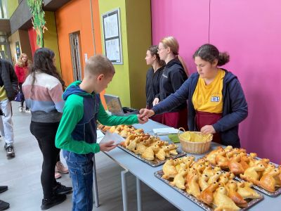 Da es der Tafel oft gerade an länger haltbaren Lebensmitteln mangelt und der Bedarf in den letzten Monaten enorm gestiegen ist, freuten sich alle umso mehr über eine riesengroße Auswahl an Kaffee, Mehl, Nudeln, Konserven, Reis u. v. m. Auch die Weihnachtsschokolade durfte nicht fehlen. Am 9. Dezember wurden die Lebensmittelspenden von Schülersprecher Ozan Özpinar persönlich an die ehrenamtlichen Helfer der Vilshofener Tafel übergeben, deren herzlichen Dank wir Ihnen allen auch auf diesem Weg übermitteln sollen. Zusätzlich zu den Sachspenden überreichte Emma Linn, stellvertretend für alle Mitglieder des Schülercafés Tintenklecks, den Erlös aus dem Verkauf von selbstgebackenen Martinsgänsen.