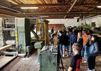 Unsere Werkenschüler der 7. Jahrgangsstufe erfuhren bei Schwaiger Holzindustrie in Hengersberg, wie dort 100% eines jeden Baumstammes verarbeitet werden und wie eine Gattersäge arbeitet im Sägewerk Wiesmüller.