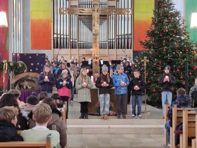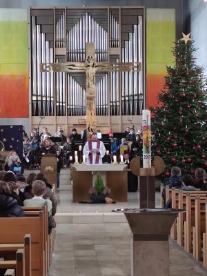 Beide Adventsgottesdienste wurden gemeinsam von Schulchor, Bläsergruppe, Lehrerchor und den Klassen 5c und 6d musikalisch mit einem bunten, abwechslungsreichen Programm unter der Leitung von Frau Faigl und Herrn Eckmüller mitgestaltet. Zusammen mit Schülern hatten Frau Spandel und Frau Heinzl einen besinnlichen Wortgottesdienst vorbereitet. Herzlichen Dank auch an das Technikerteam mit Herrn Wötzel und Herrn Fürstberger an der Kirchenorgel.